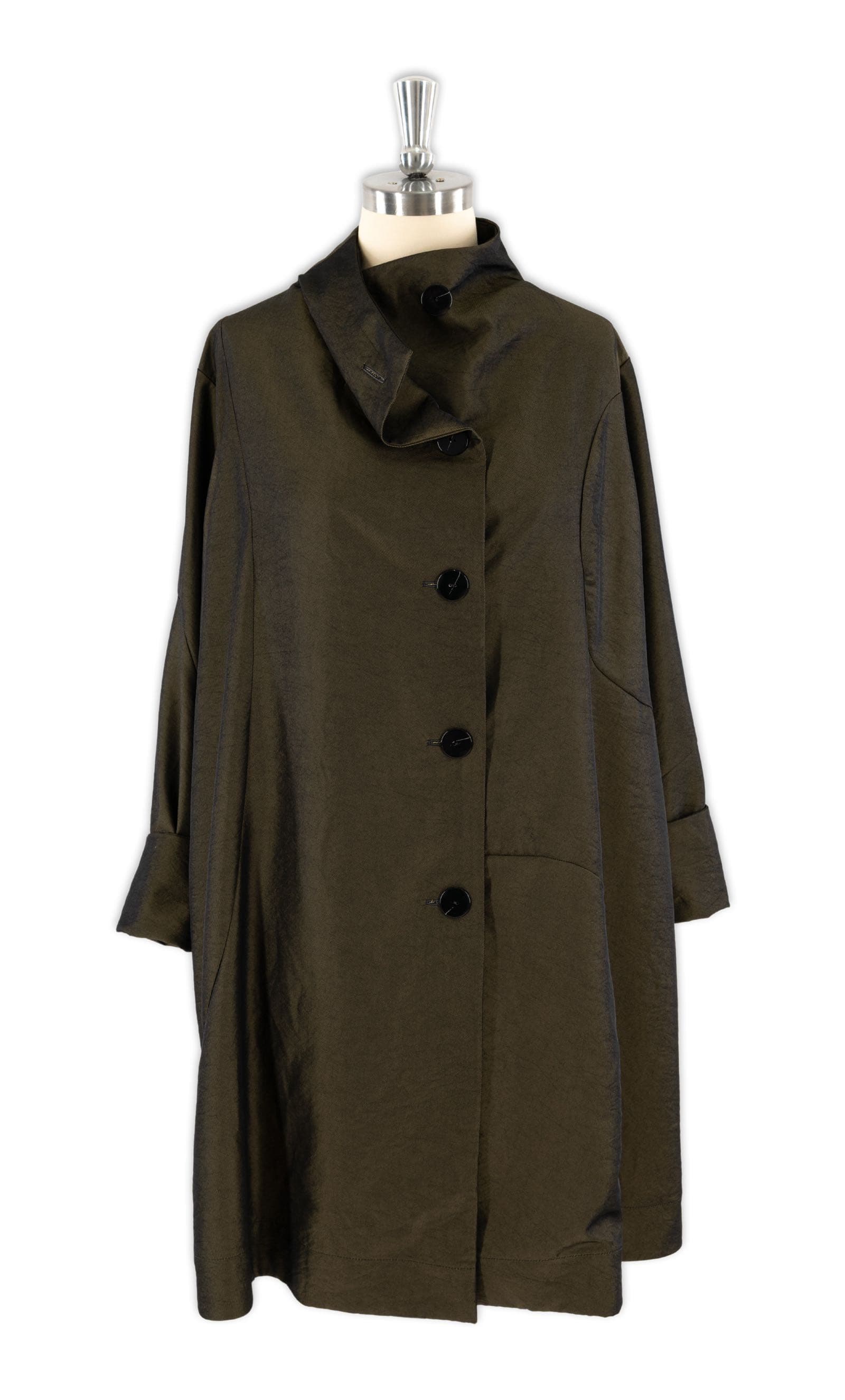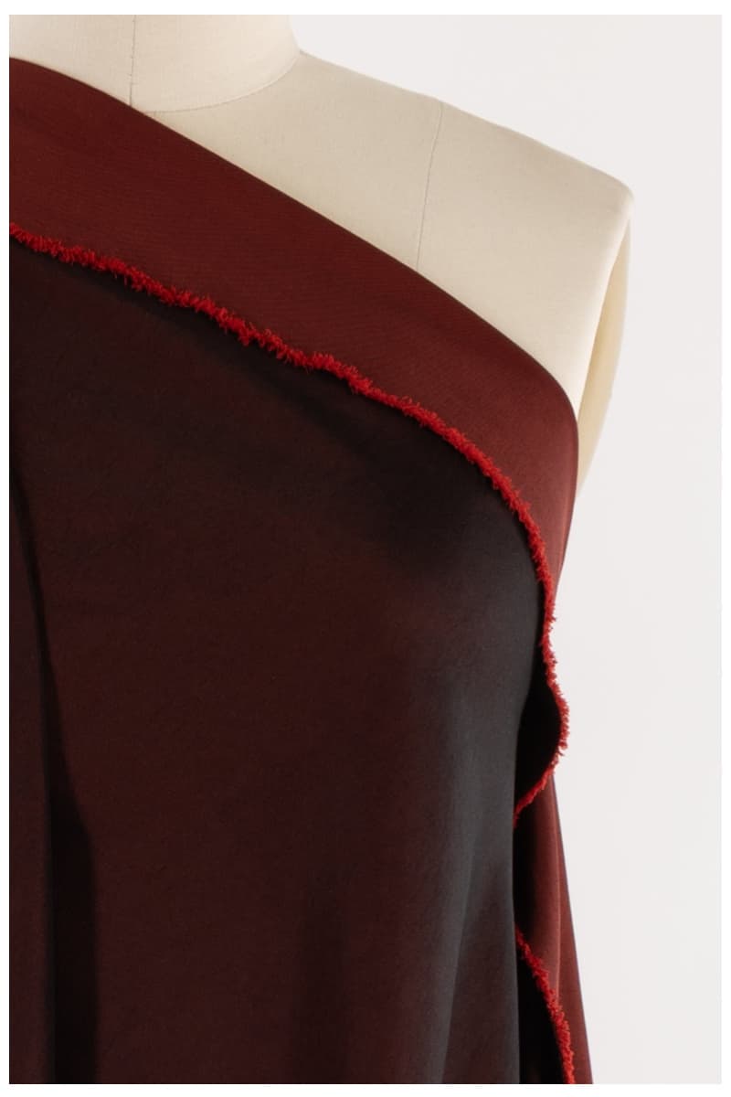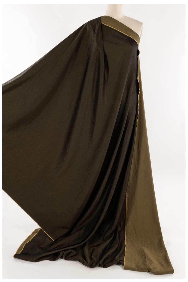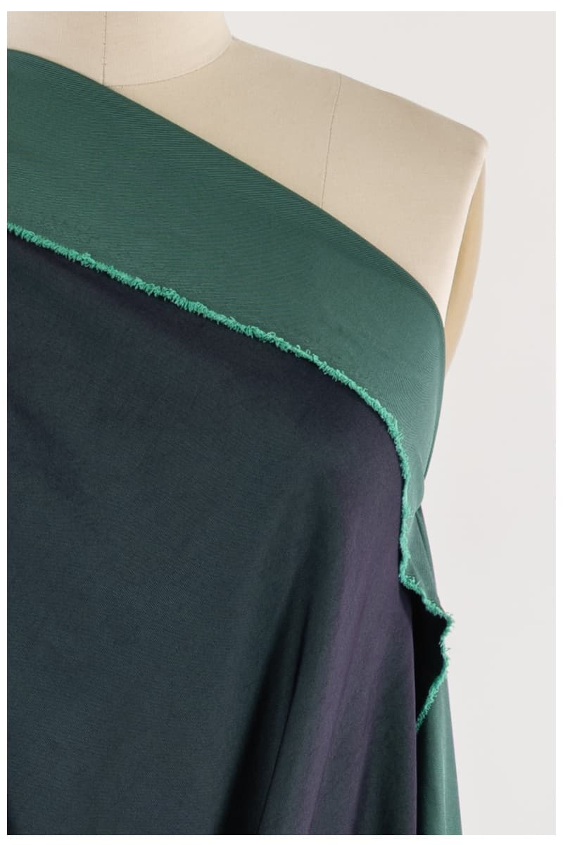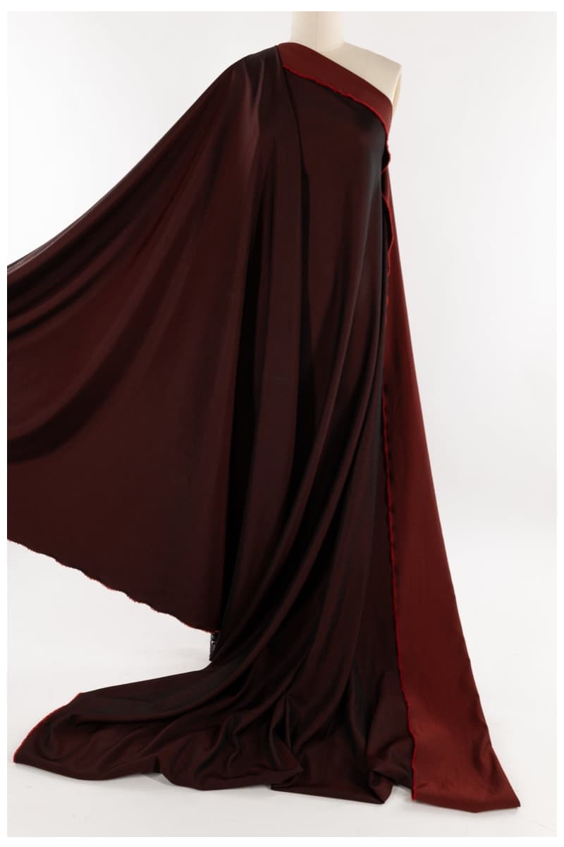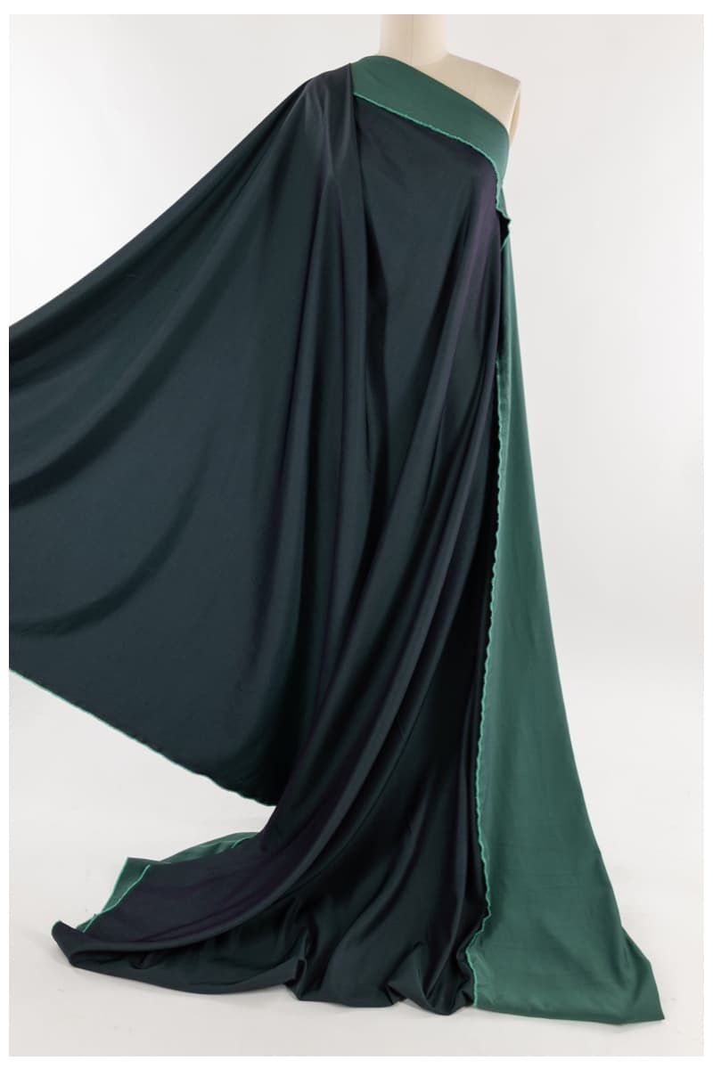 Each fabric is a luxe deadstock design with a rich black warp and colored weft, giving you two beautifully contrasting faces (teal / turquoise, ruby / red, forest / golden moss) — yet it’s ultralight, packable, and drapes like a dream.