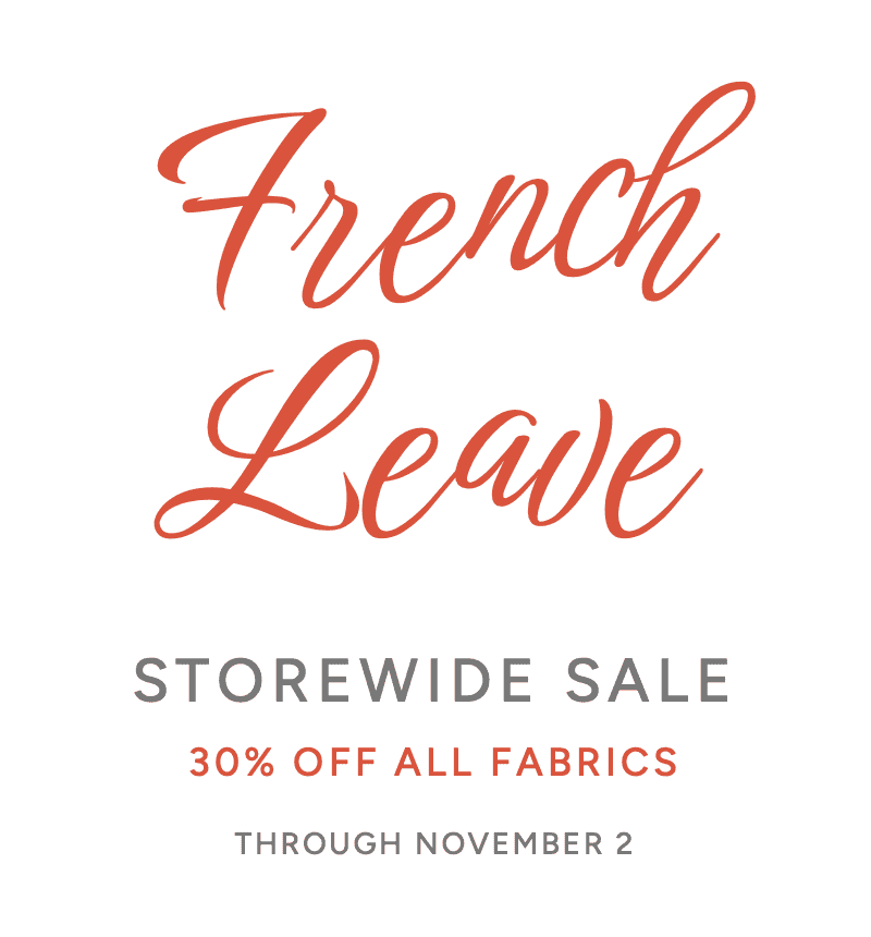 Have you shopped the French Leave Sale yet? Enjoy 30% off all fabrics in all collections, including knit and woven yardage, special cuts, and end cuts.