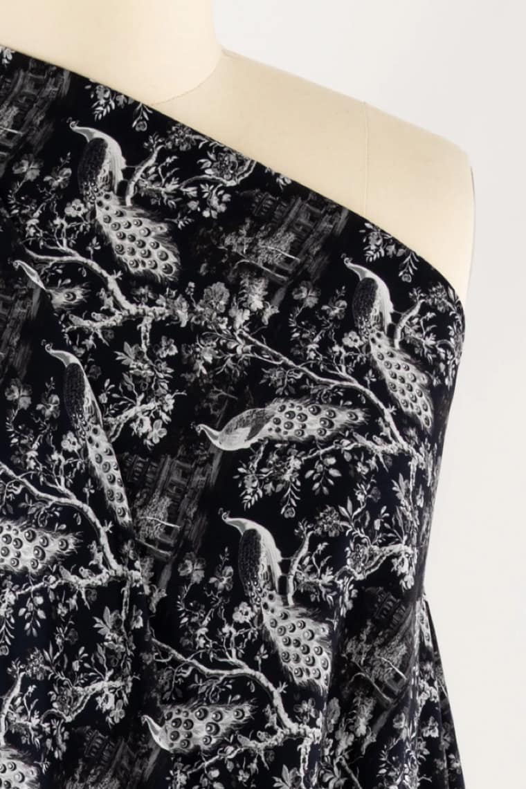 MIDNIGHT PEACOCKS VISCOSE WOVEN